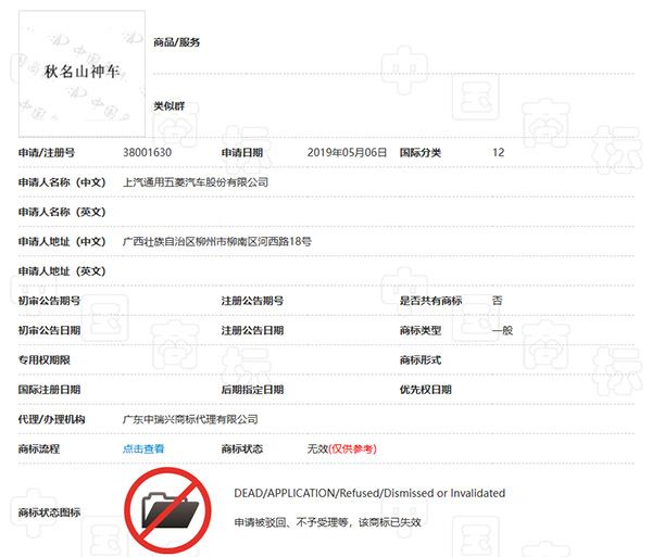 五菱汽車就因為“秋名山神車”的網(wǎng)絡(luò)梗,嘗試注冊“秋名山神車”商標(biāo)。但商標(biāo)狀態(tài)顯示已經(jīng)駁回。雖然不知道具體的駁回原因,但從未見過五菱在官方的正式產(chǎn)品或廣告中使用“秋名山神車”與商品相關(guān)聯(lián)。